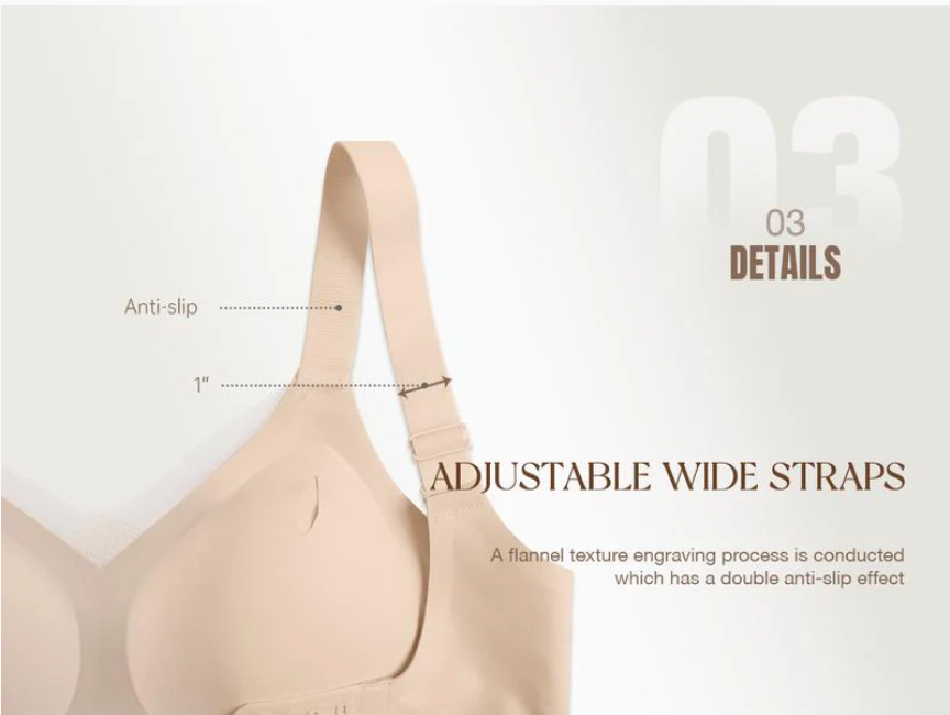 Anti slip schouderbandjes en net iets breder dan alle andere bh's ook weer om het juiste comfort te geven.