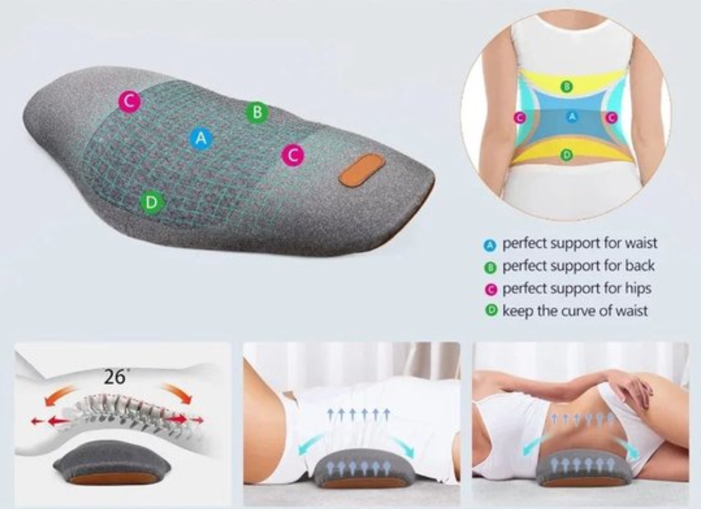 Zowel voor de thoracale (hoge rug) klachten, vooral door zwaar sjouwwerk, als de lumbale en SI (onder rug) klachten, is dit kussen een uitkomst.